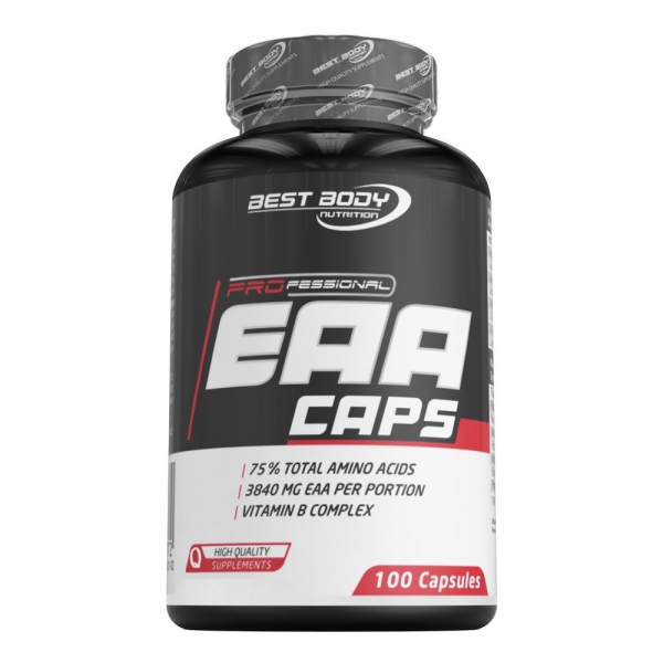 Best Body Nutrition Professional EAA Caps, Nahrungsergänzungsmittel mit 75% essenziellen Aminosäuren (EAA), Vitamin B-Komplex.