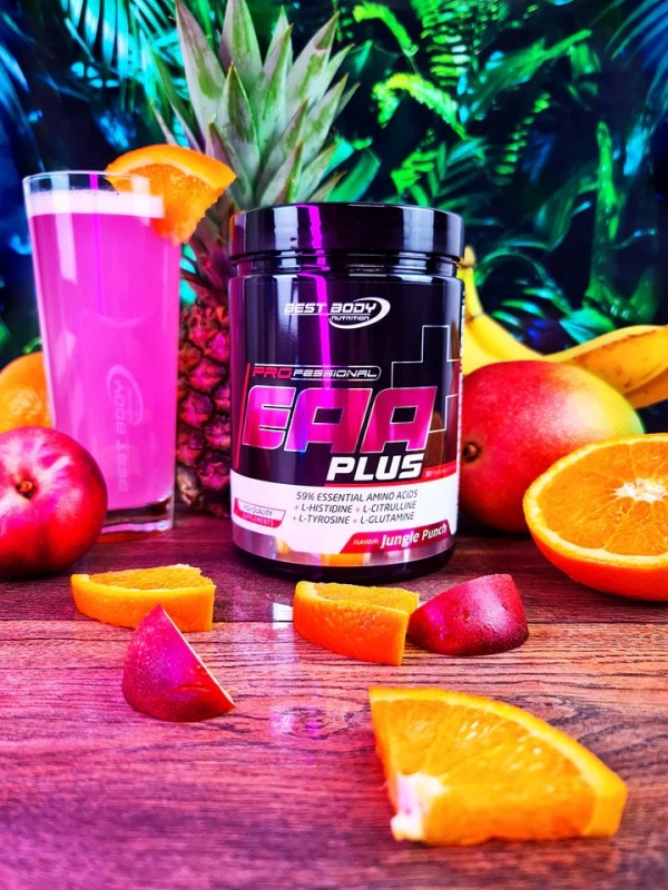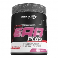 Das Professional EAA Plus von Best Body Nutrition ist besonders für Kraft- und Fitnesssportler konzipiert. Neben allen essentiellen Aminosäuren enthält das Powder die semi-essentiellen Aminoäuren L-Histidin, L-Tyrosin, L-Glutamin und die nicht essentielle Aminosäure L-Citrullin. Die hochwertigen Aminosäuren tragen zum Erhalt und zur Zunahme der Muskelmasse bei. Das EAA Plus ist vegan und somit der perfekte Trainingspartner für Veganer und Vegetarier. Zusätzlich ist das EAA Plus laktose- und zuckerfrei. Wie bei allen Produkten verzichtet Best Body Nutrition auch bei diesem Produkt auf die Verwendung des Süßstoffs Aspartam.