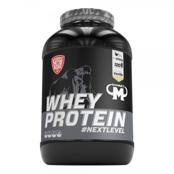 Das Whey Protein von Mammut ist ein hochwertiges Molkenproteinpulver zur Herstellung eines Eiweißshakes. Das enthaltene Wheyprotein ist auf die Grundbedürfnisse eines Sportlers abgestimmt. Ein Shake enthält 27 g Protein. Eiweiß ist ein wichtiger Grundbaustein im Körper, dessen Gesamtbestand bei einem Erwachsenen ca. 15 - 17 % der Körpermasse ausmachen. Es dient als Baustoff für die Zunahme und Aufrechterhaltung der Muskulatur und der Erhaltung normaler Knochen.