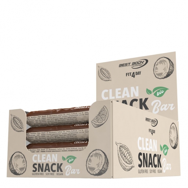 Die Clean Snack Bar‘s von Best Body Nutrition sind Bio-Riegel auf der Basis von Datteln, verfeinert mit Kokosnusssplittern. Erhältlich sind die Riegel in zwei Geschmacksrichtungen – Lemon & Coconut und Coconut & Cocoa. Beide Varianten der Clean Snack Bar‘s bestehen aus weniger als 5 Zutaten natürlichen Ursprungs, enthalten keine Zusatzstoffe und sind sowohl vegan als auch glutenfrei. Als Basis für die Riegel werden Datteln aus biologischer Landwirtschaft verwendet. Die Früchte der ursprünglich aus dem Persischen Golf stammenden Dattelpalme sind reich an Vitaminen, Mineralstoffen und Antioxidantien.