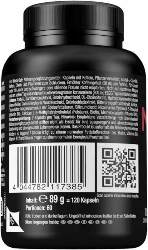 Unsere Meta Cut Caps wurden speziell entwickelt, um den Körper während einer kalorienreduzierten Diät zur Gewichtsabnahme mit wichtigen Nähstoffen zu versorgen und den Stoffwechsel zu unterstützen. Bei geringer Nahrungsaufnahme fühlen sich viele Menschen müde und antriebslos. Dies geht oft auch mit abnehmender Willenskraft und Motivation einher, was zu Heißhungerattacken oder dem Ausfall einer Trainingseinheit führen kann. Um dies zu vermeiden, enthalten unsere Meta Cut Caps einen Energiekomplex, sowie wichtige Nährstoffe, die für einen funktionierenden Stoffwechsel benötigt werden. Viele der Inhaltsstoffe unserer Meta Cut Caps werden mit der Regulation der Thermogenese (Wärmeproduktion) und der Lipolyse (Abbau von Fetten), beziehungsweise dem Fettstoffwechsel assoziiert.