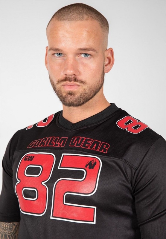 Sind Sie bereit, Ihre Lieblings-Workout-Marke zu vertreten? Dann ist dieses sportlich geschnittene Gorilla Wear Fresno T-Shirt die perfekte Wahl für Sie. Dieses athletisch geschnittene Hemd liegt enger am Körper. Sie werden es lieben, Ihren Stil zur Schau zu stellen, wenn Sie dieses trendige Gorilla Wear Fresno T-Shirt tragen. Auf der Vorder- und Rückseite des Shirts ist die Nummer 82 aufgedruckt.