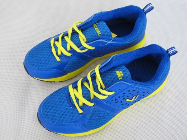 Die Besonderheit des Schuhs ist seine Leichtigkeit. Wir empfehlen im Zweifel eine Nummer größer zu bestellen. Das stylische Design in Blau und Gelb rundet das Gesamtbild des Schuhs perfekt ab.