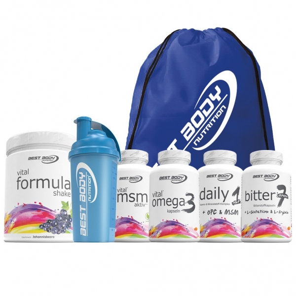 - Produktpaket enthält: Vital Omega 3 Kapseln, Vital Formula Shake, Vital MSM Aktiv Tabs, Daily One Caps und Bitter Seven Caps